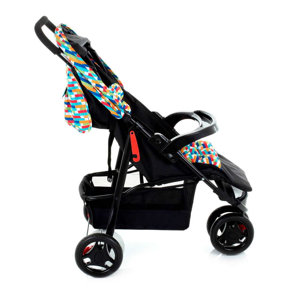 Leve e compacto, carrinho com três rodas, fechamento fácil e rápido, amplo cesto. O colchonete acolchoado é removível para lavar. Mais confortável com a inclinação total do encosto (tipo berço) barra frontal, visor e bolso na capota.